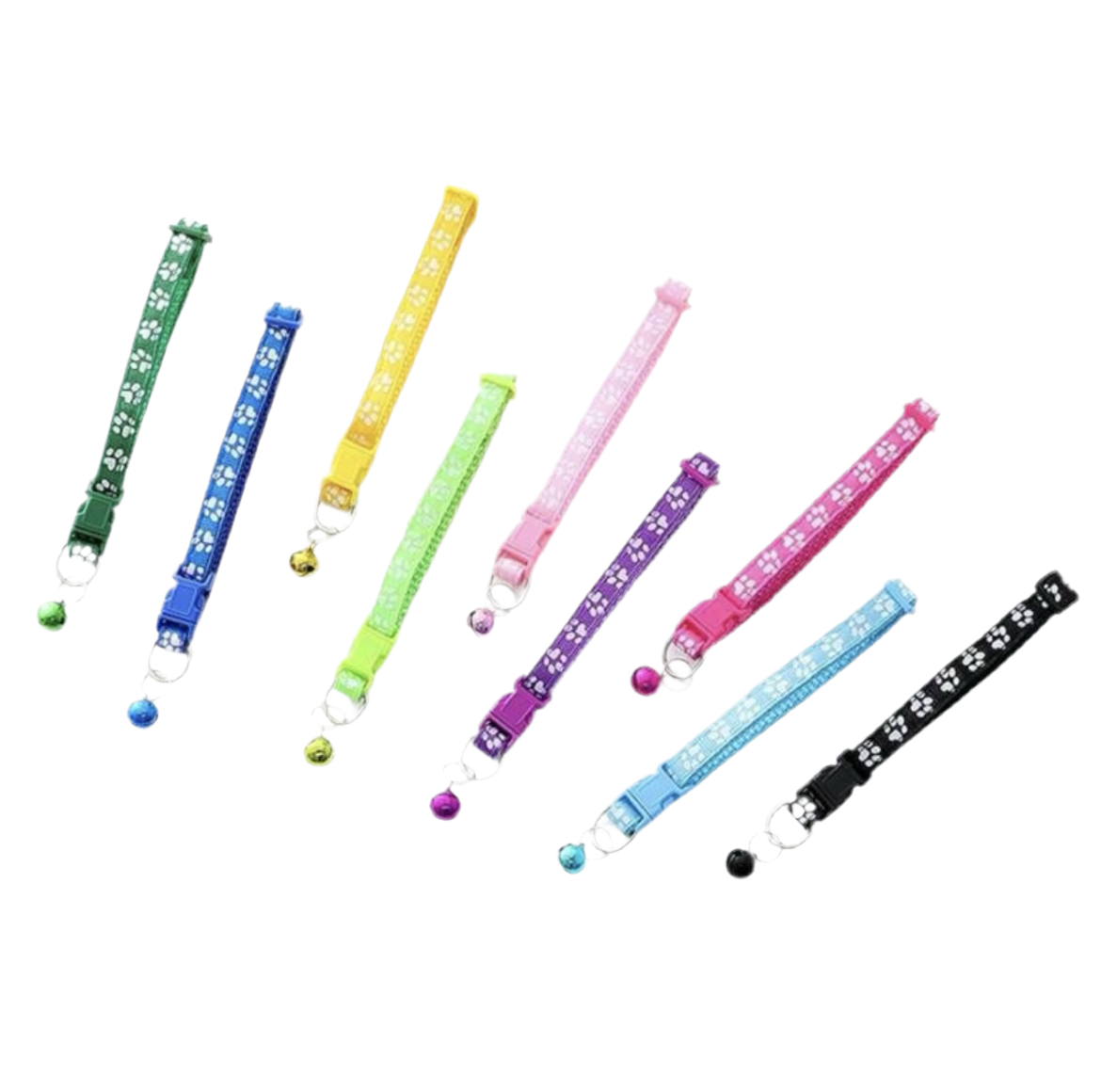 Adjustable pet collar with a cute bell. Available in multiple colors. Ideal for cats and small dogs.