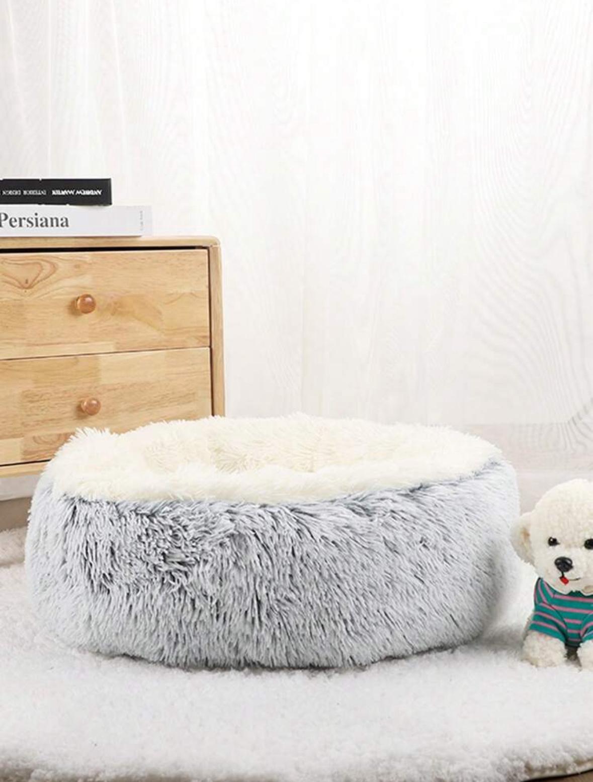 Fluffy wool pet bed offers warmth and comfort for small dogs or cats. Anti-slip base, washable cover, and cozy interior. Ideal for indoor rest and sleep.